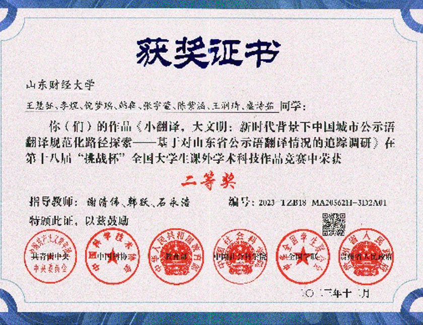教研并进结硕果,立德树人育英才。亚洲体育博彩平台 教师科研教学成果丰硕:近年来承担国家社科基金重点项目1项、国家社科基金项目18项,省部级社科基金项目40余项、教育厅人文社科项目20余项;在Language learning、Lingua、《外语教学与研究》《外国语》等国内外权威期刊发表论文280余篇,出版专著译著50余部、教材16部;获山东省社会科学优秀成果奖12项、省教育厅优秀成果奖16项、山东省研究生优秀成果奖3项。在教学建设方面,获批国家级一流专业2个(商务英语、英语)、省级一流专业2个(日语、法语);建成国家一流课程3门、省级一流课程5门,省课程思政示范课程1门、省研究生优秀课程3门、省研究生案例库3项、省级教改重点项目2项,教学改革成果持续涌现。